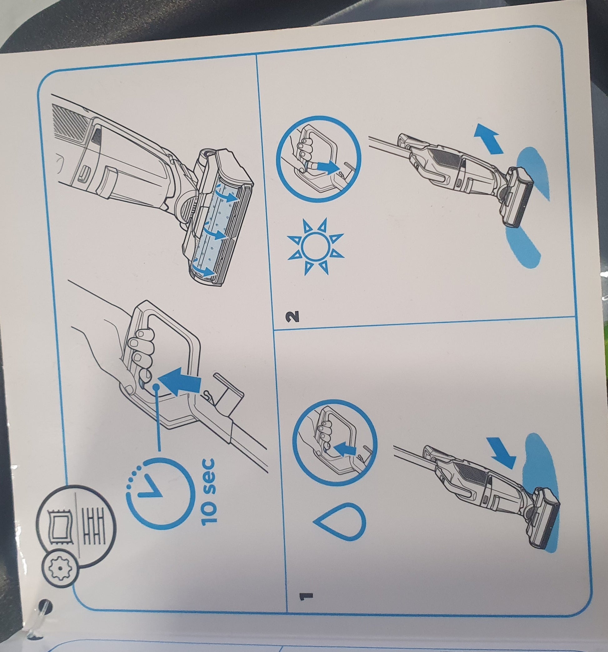 É ideal e seguro para limpar todos os tipos de pisos duros. Ele até refresca seus tapetes. Possui recurso de LED na base para iluminar pelos de animais, poeira e sujidade difícil de enxergar. A tecnologia anti enrosco minimiza o enrolamento dos pelos na escova rotativa mantém o rolo da escova livre de cabelos.