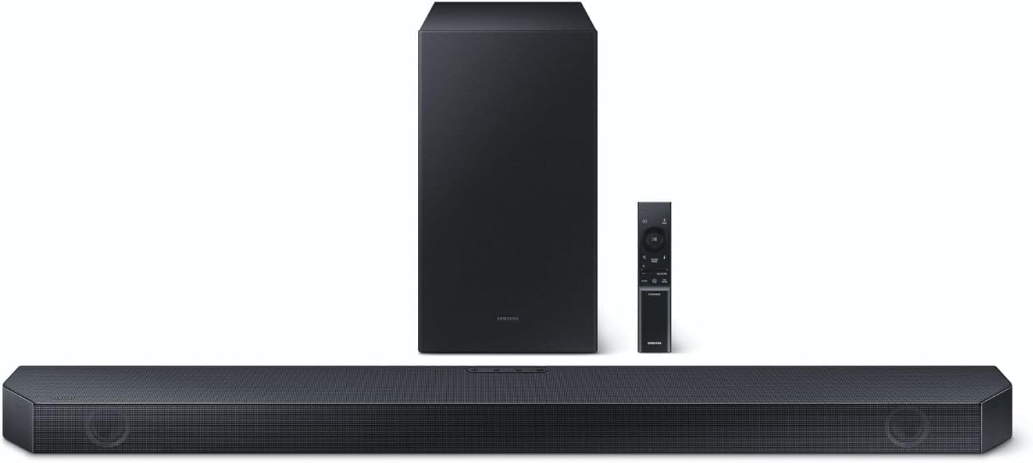 Som surround espetacular de 3.1.2 canais com 9 alto-falantes integrados e subwoofer externo de 6,5 polegadas.