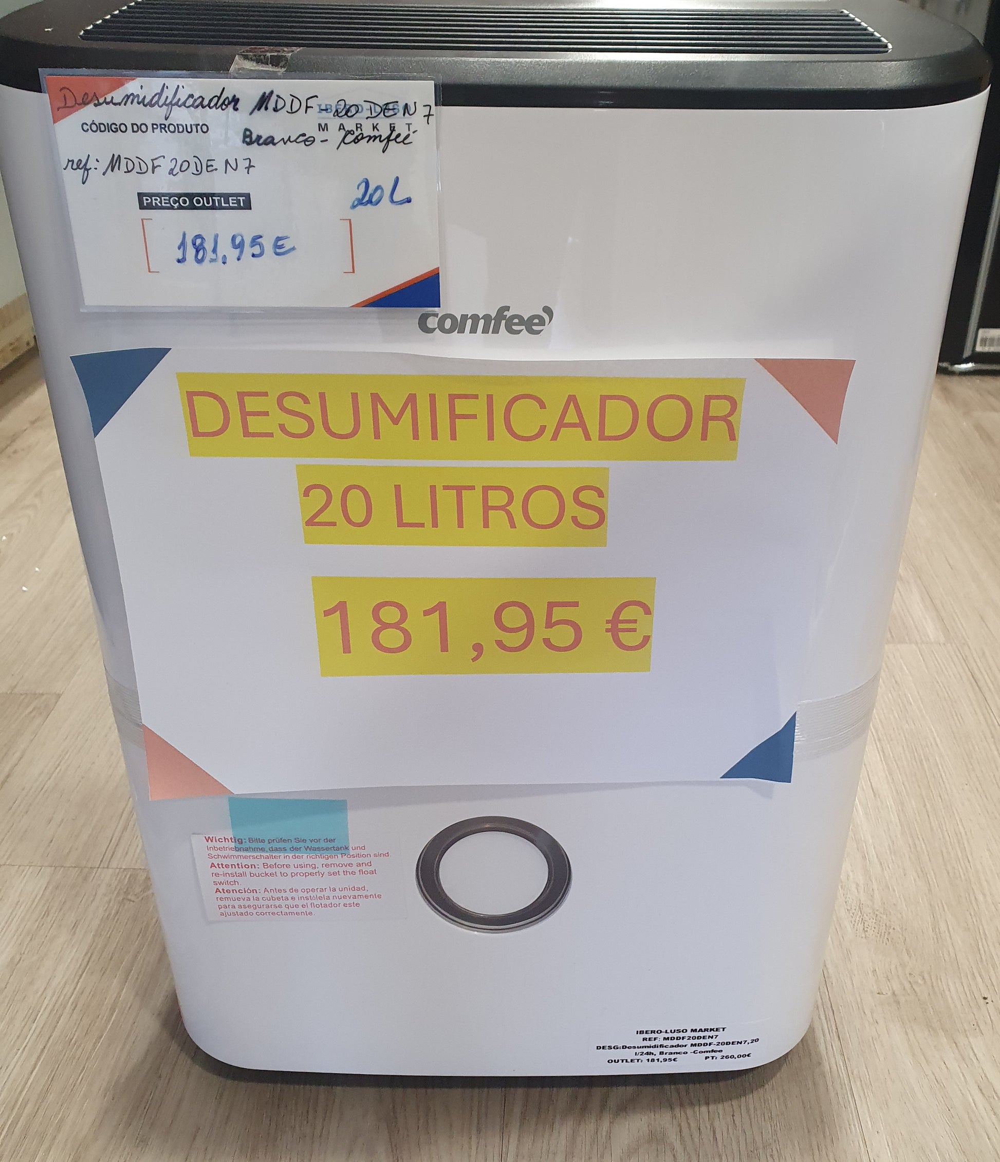 Nível de ruído: 46 dB Apropriado para divisões até: 40 m² Capacidade de desumidificação (máx.): 20 l/24h Interruptor ligar/desligar: Sim Frequência: 50 Hz Visor incorporado: Sim Temporizador incluído: Sim Visor: LED Tanque de água removível: Sim Localização: Chão, Mesa Consumo de energia (típico): 280 W Consumo de energia (máx): 360 W Voltagem de entrada AC: 220 - 240 V Frequência de entrada AC: 50 Hz Temperatura de funcionamento (T-T): 5 - 32 °C