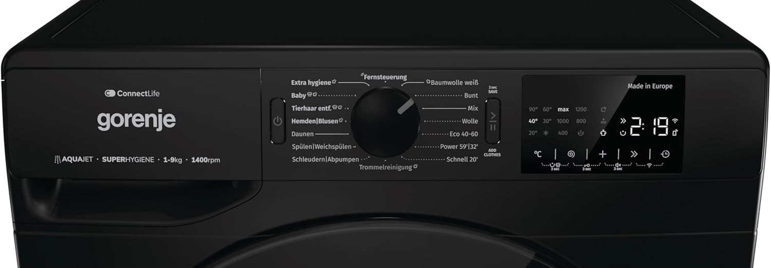 Máquina de Lavar Roupa WPNEI94A1DTSB 9Kg PRETA - GORENJE