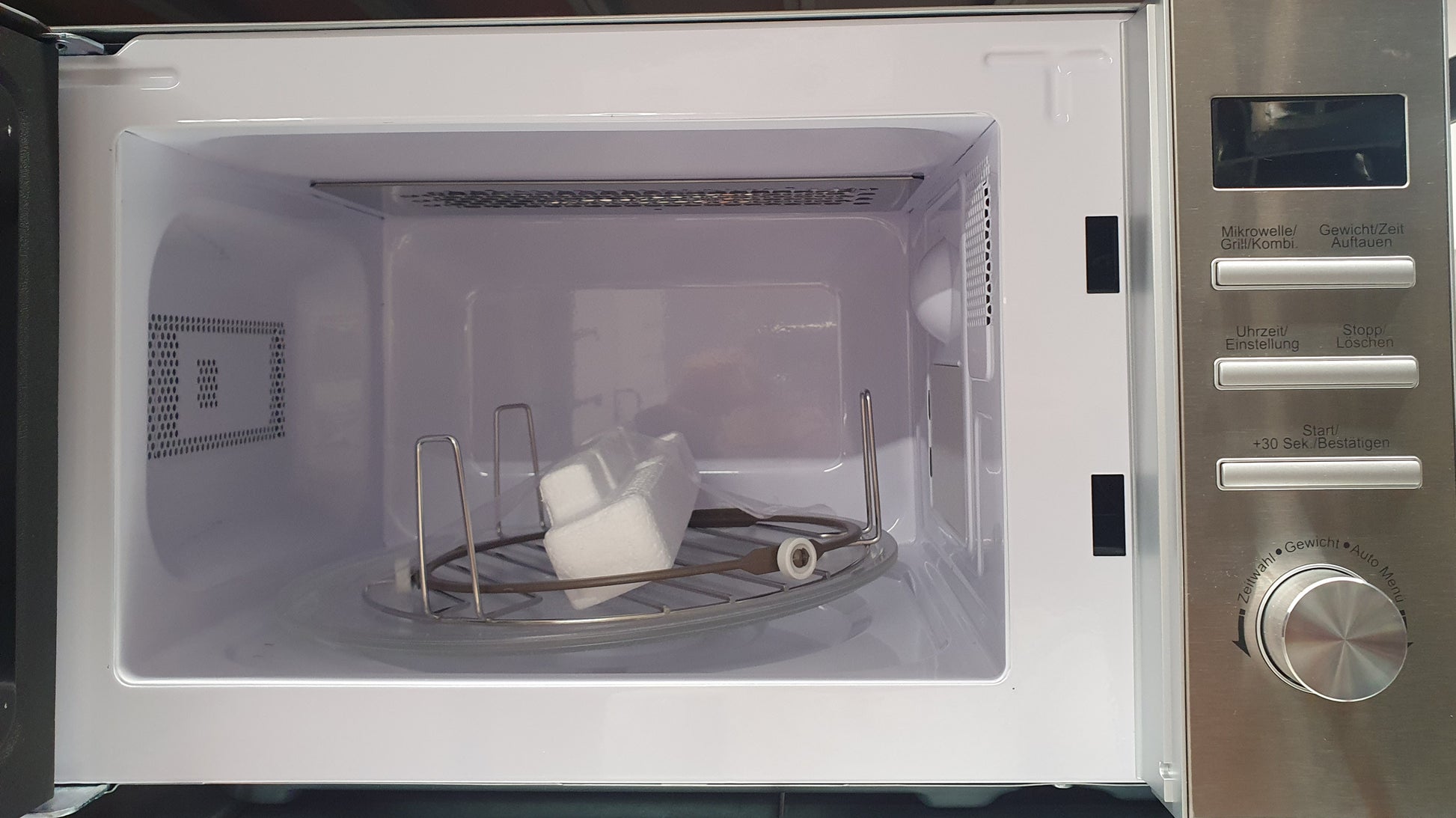 Operação prática e segura: O micro-ondas Hanseatic é fácil de usar e oferece praticidade adicional com um timer eletrônico. O prato giratório de 25,5 cm garante um aquecimento uniforme dos seus pratos. A porta com dobradiça para a esquerda e a alça prática tornam o acesso particularmente prático. Um sinal sonoro informa quando o programa termina. A trava de segurança para crianças oferece segurança adicional em sua casa.