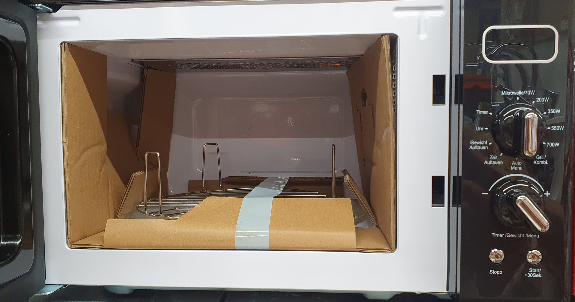 É operado através de controles rotativos e botões de pressão, e a porta abre convenientemente através de uma maçaneta com uma dobradiça da porta esquerda. A configuração da hora é eletrônica e o micro-ondas possui uma função de temporizador, exibição de hora e seleção de hora. Este micro-ondas independente não pode ser montado de forma inferior e, portanto, adapta-se de forma flexível a qualquer cozinha.